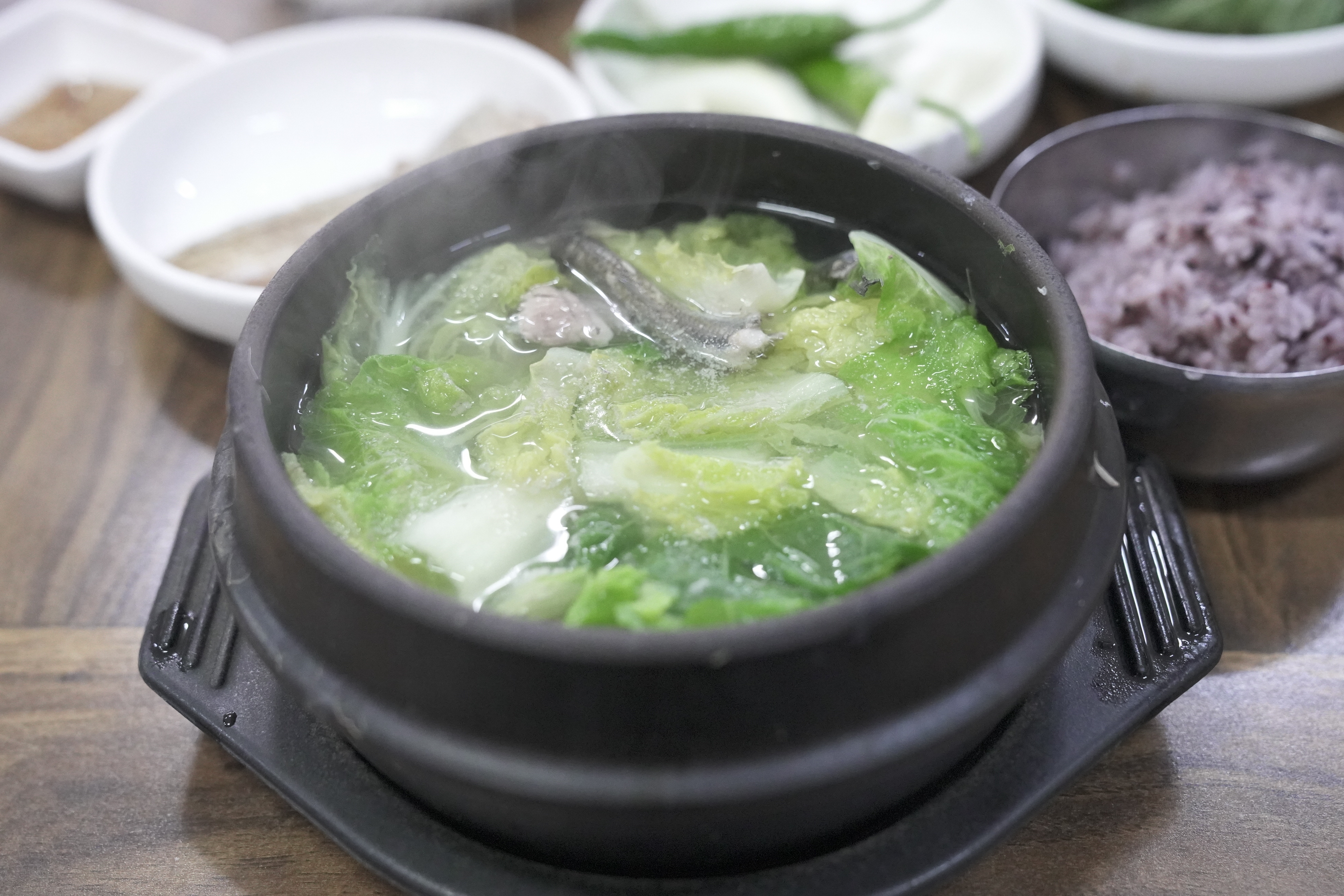 마늘을 듬뿍 넣어주니 맛이 좀 먹을 만 해졌습니다