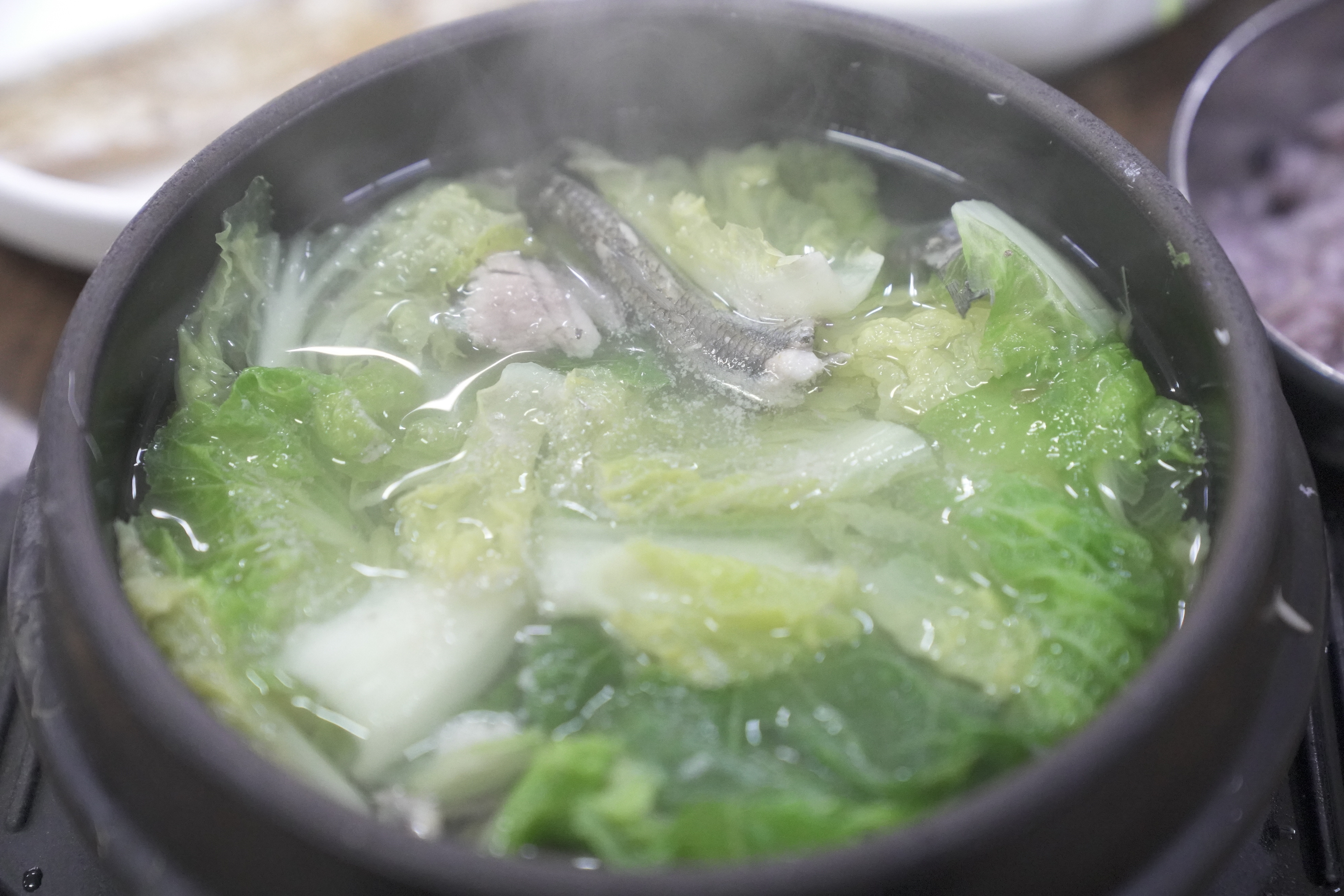 머리와 내장을 제거한 멸치와 배추들을 넣고 끓이는 요리 같아 보입니다