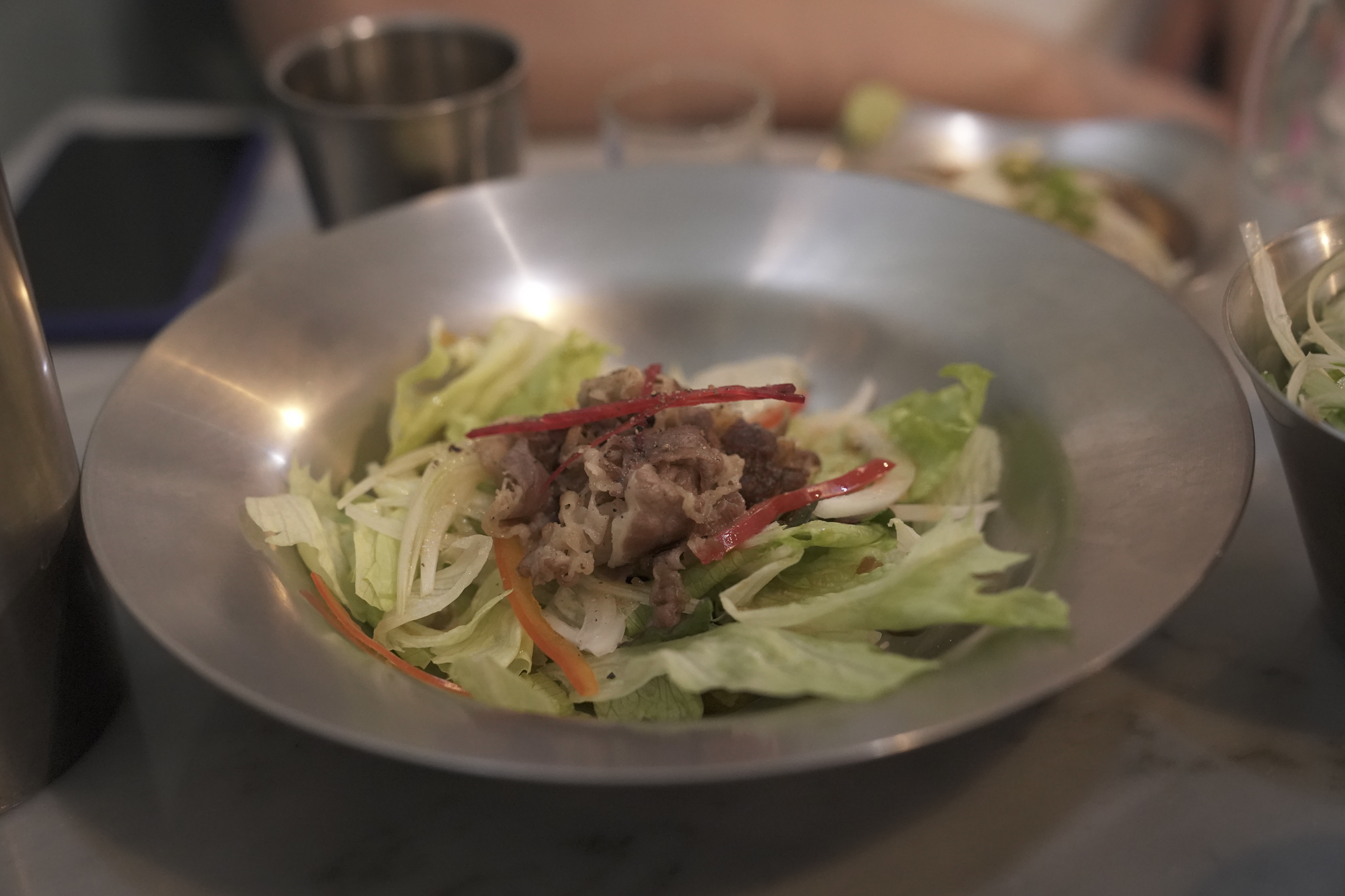 기본 메뉴로 소고기 샐러드가 나옵니다