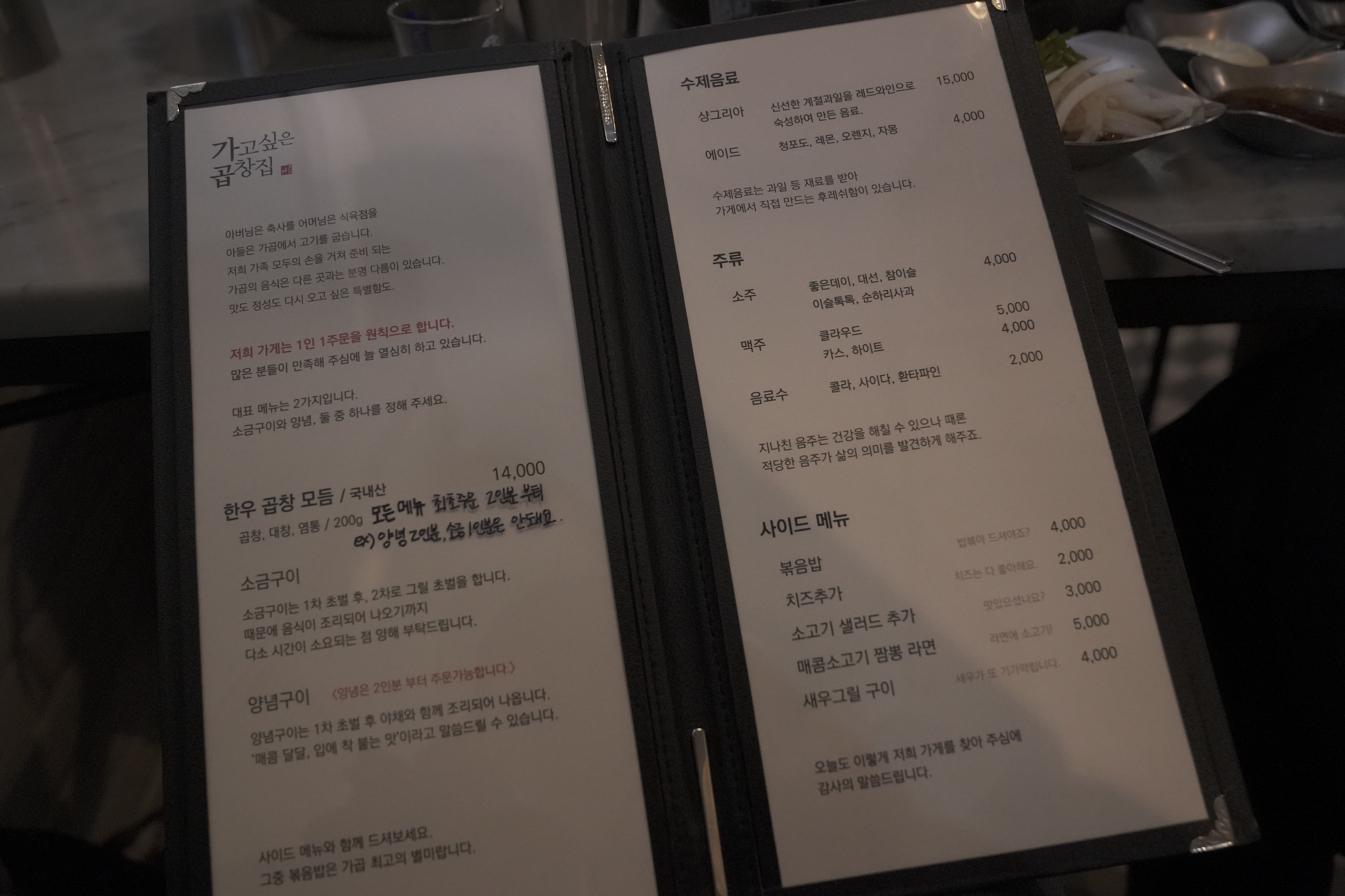 익숙한 곱창집 분위기는 아니지만 마음에 들었습니다