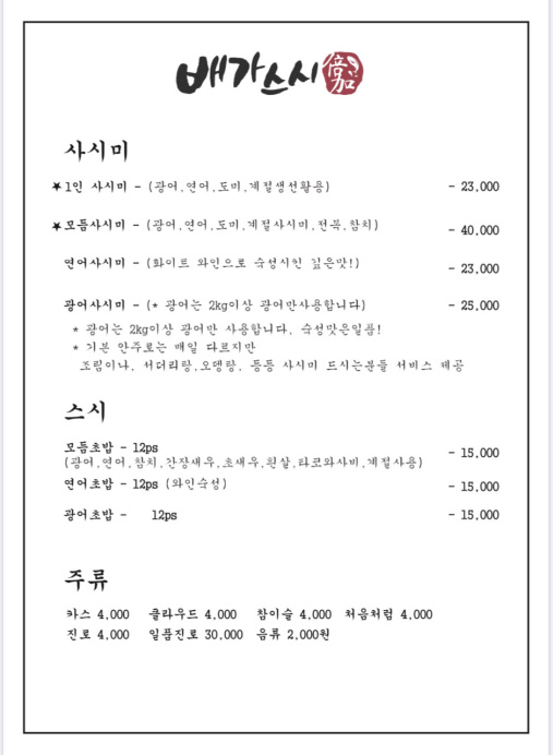 아쉬운대로 네이버에 올라온 배가스시 메뉴판을 올립니다.