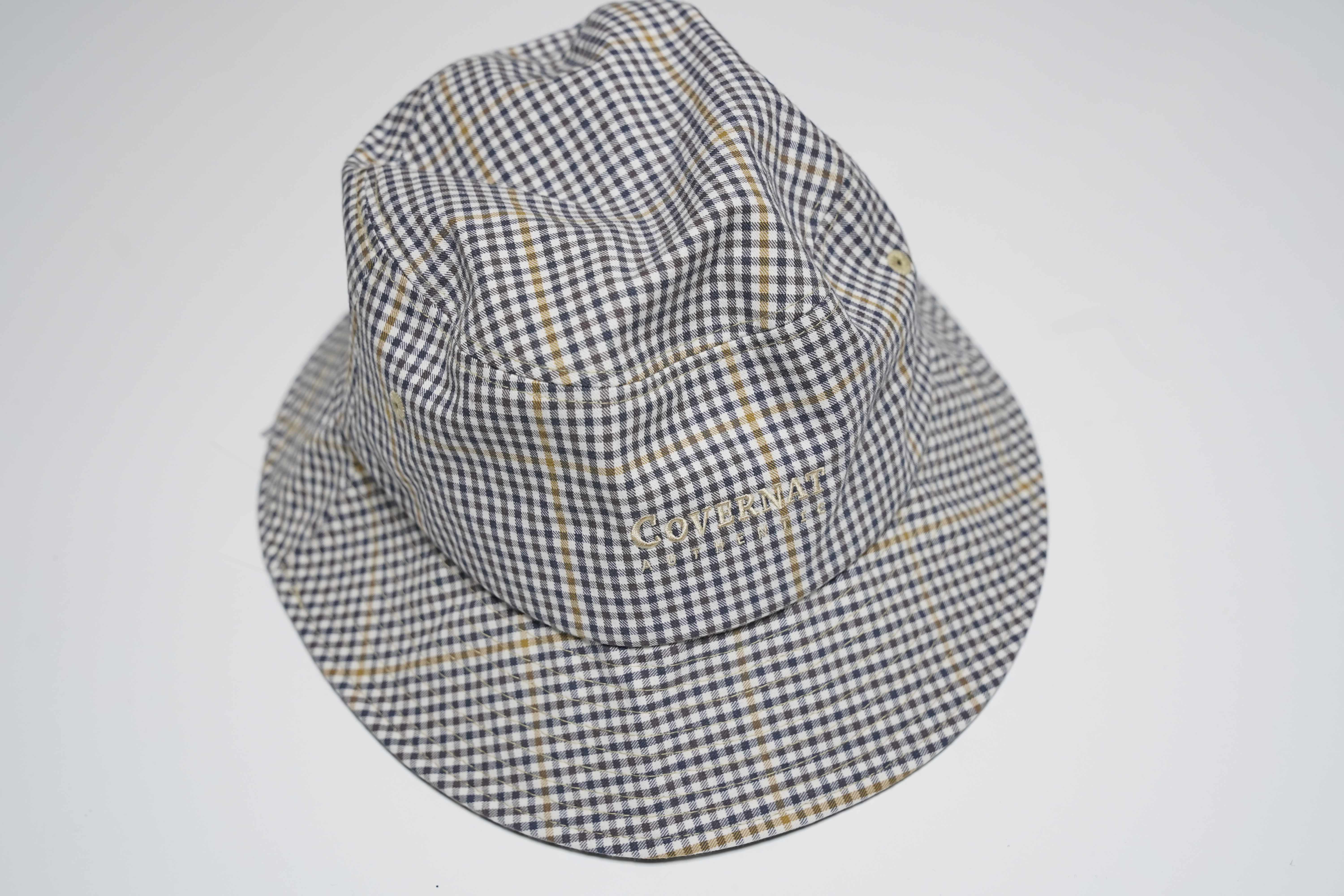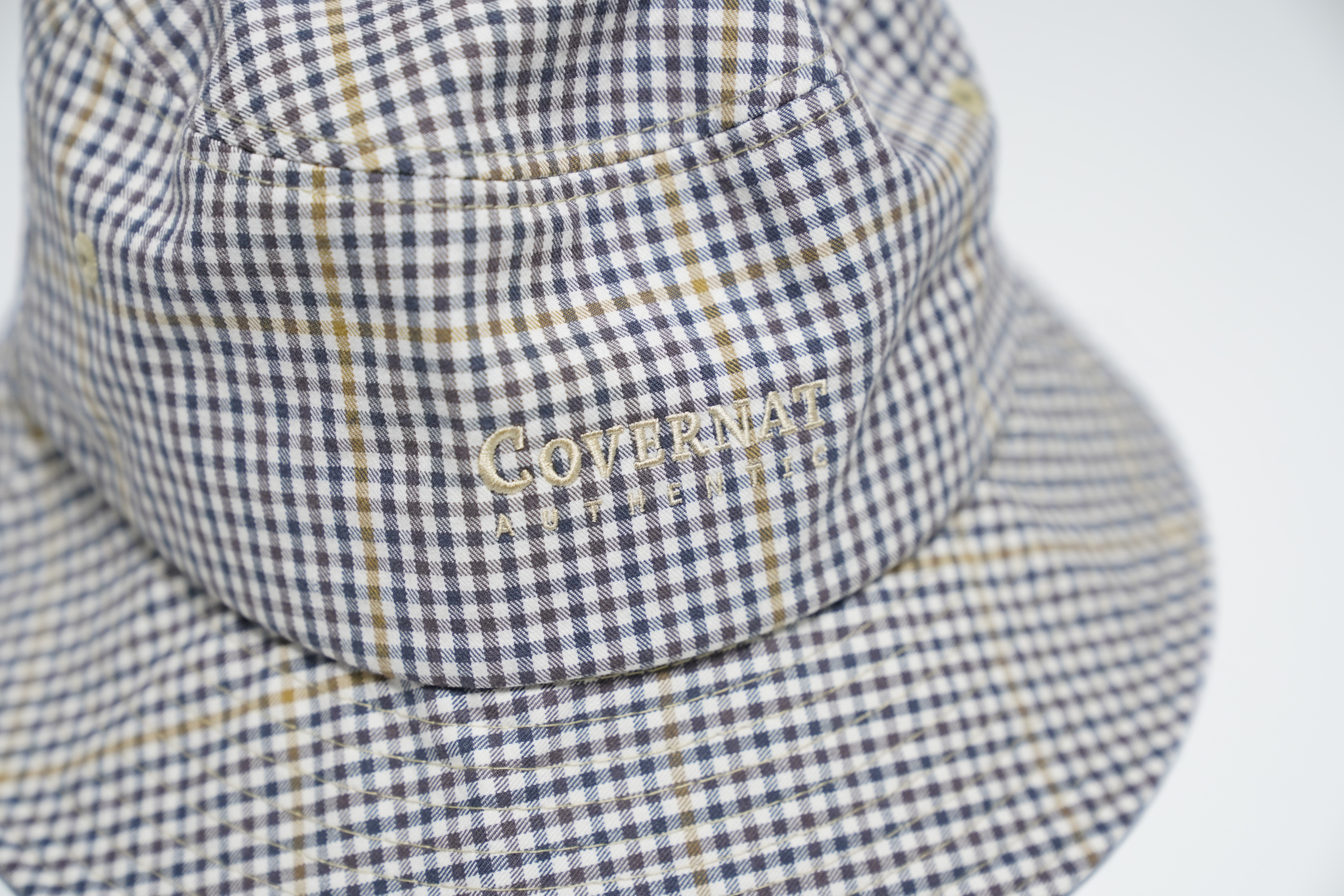 [커플 모자 추천/커플 벙거지모자] 커버낫어센틱 로고 버킷햇 체크모자 본문